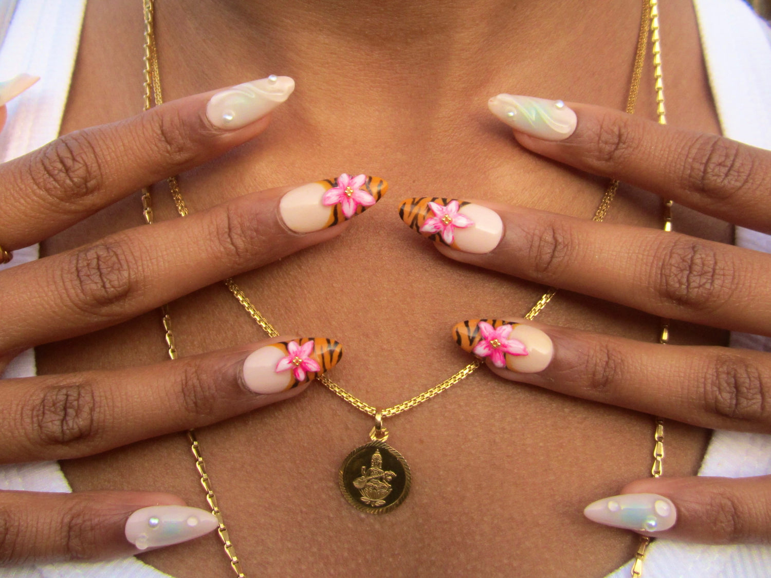 Aphrodite Nails is a small business that creates reusable press-on nails. Each nail set is handmade to order with care and detail.