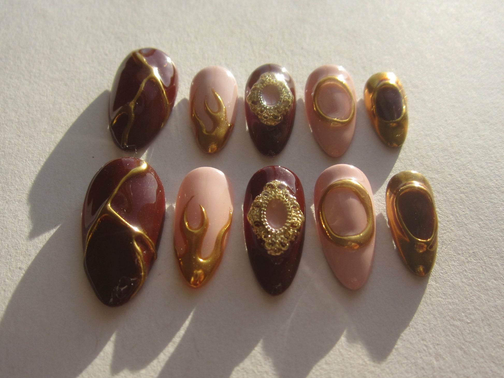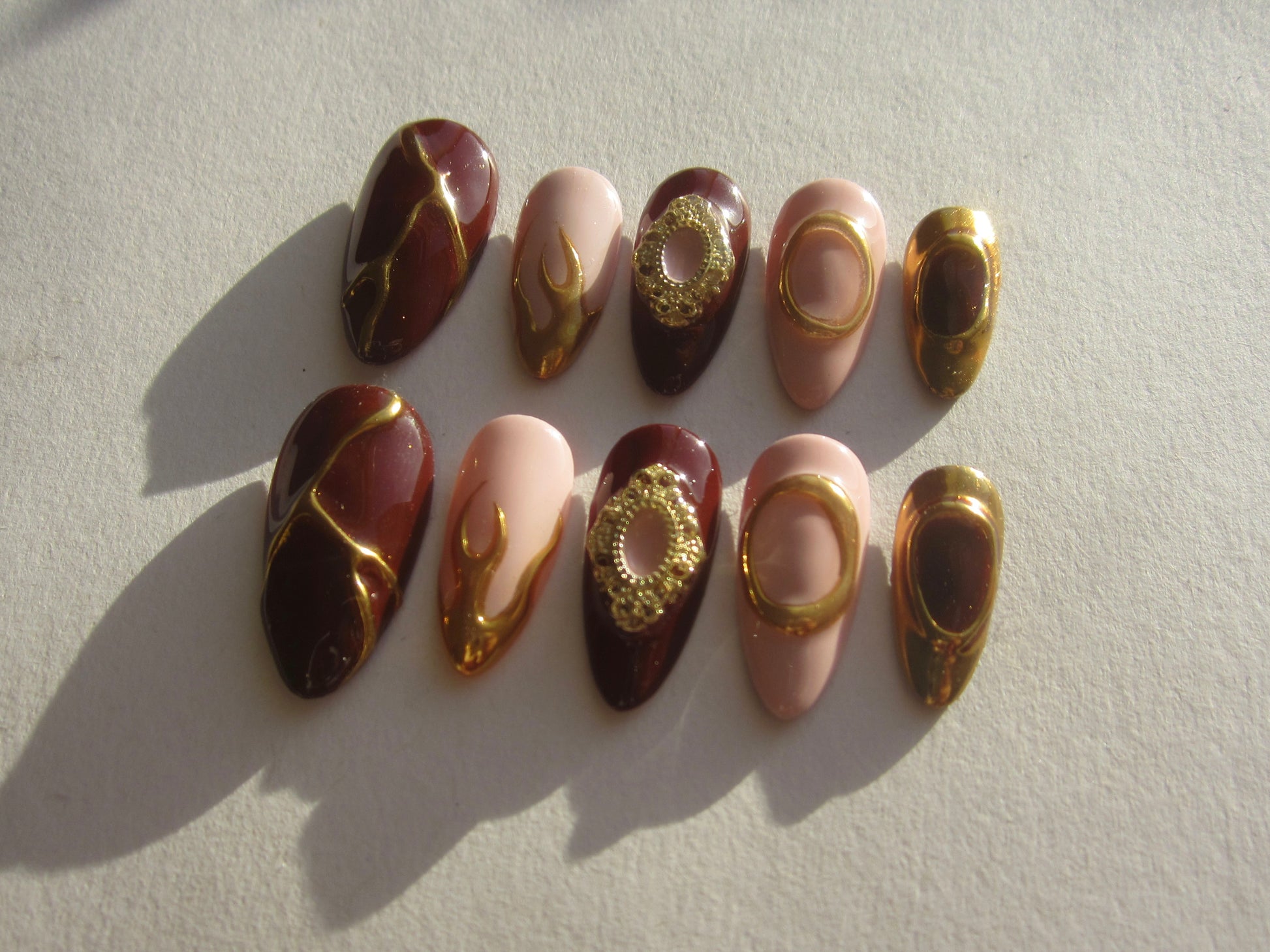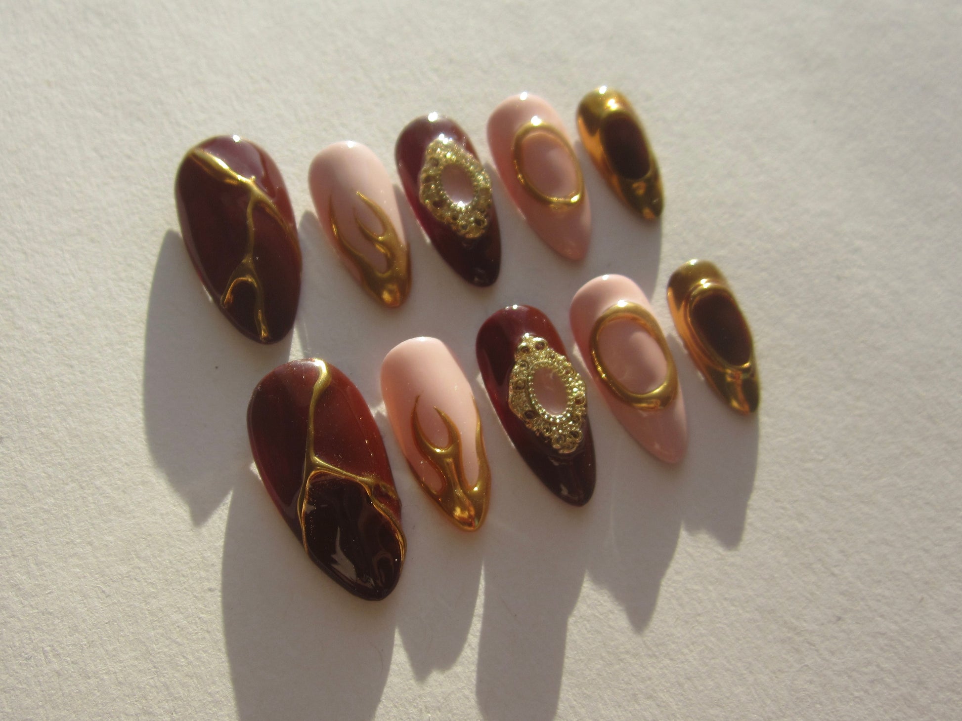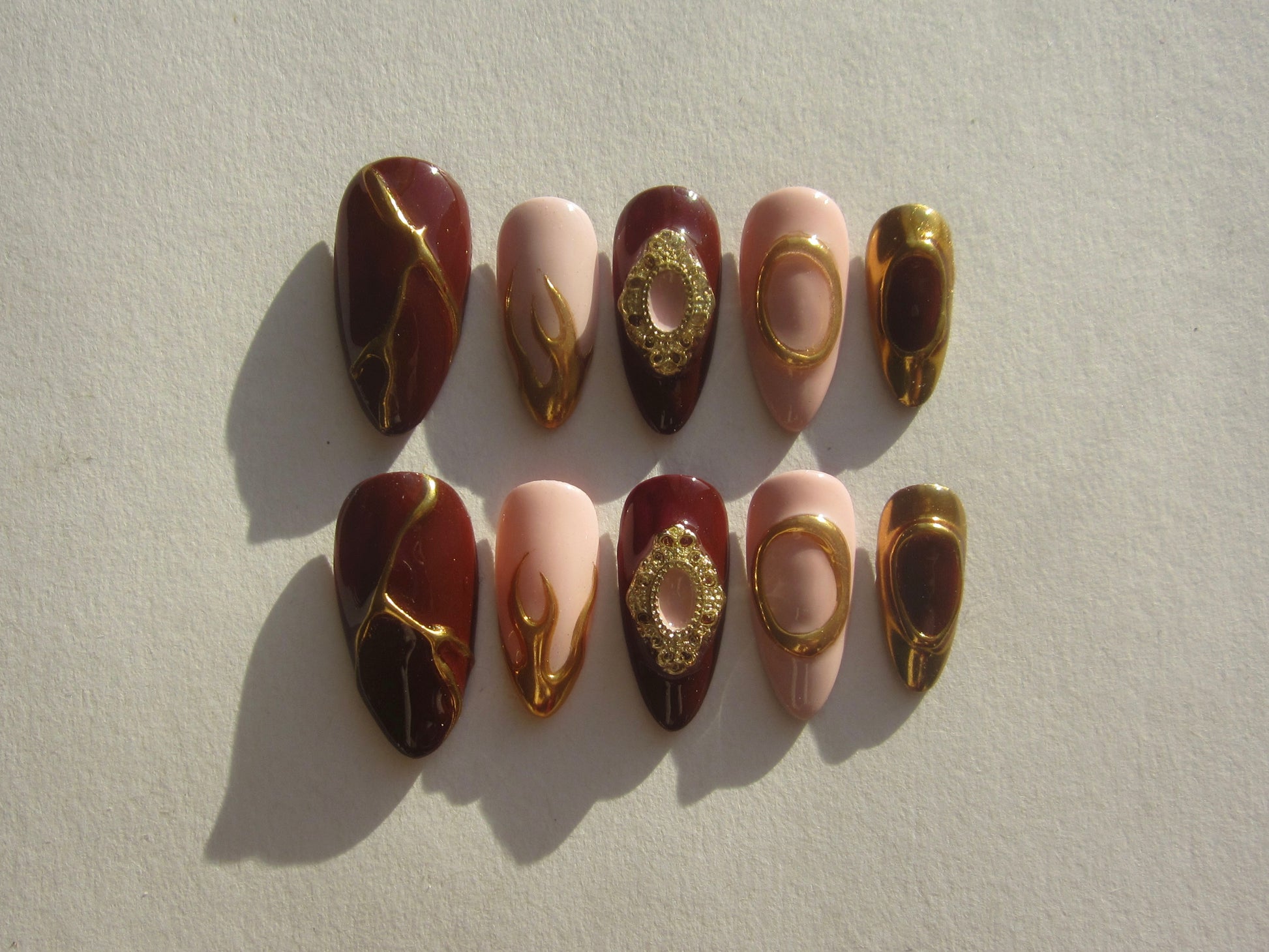 - 10 hand-painted press on nails